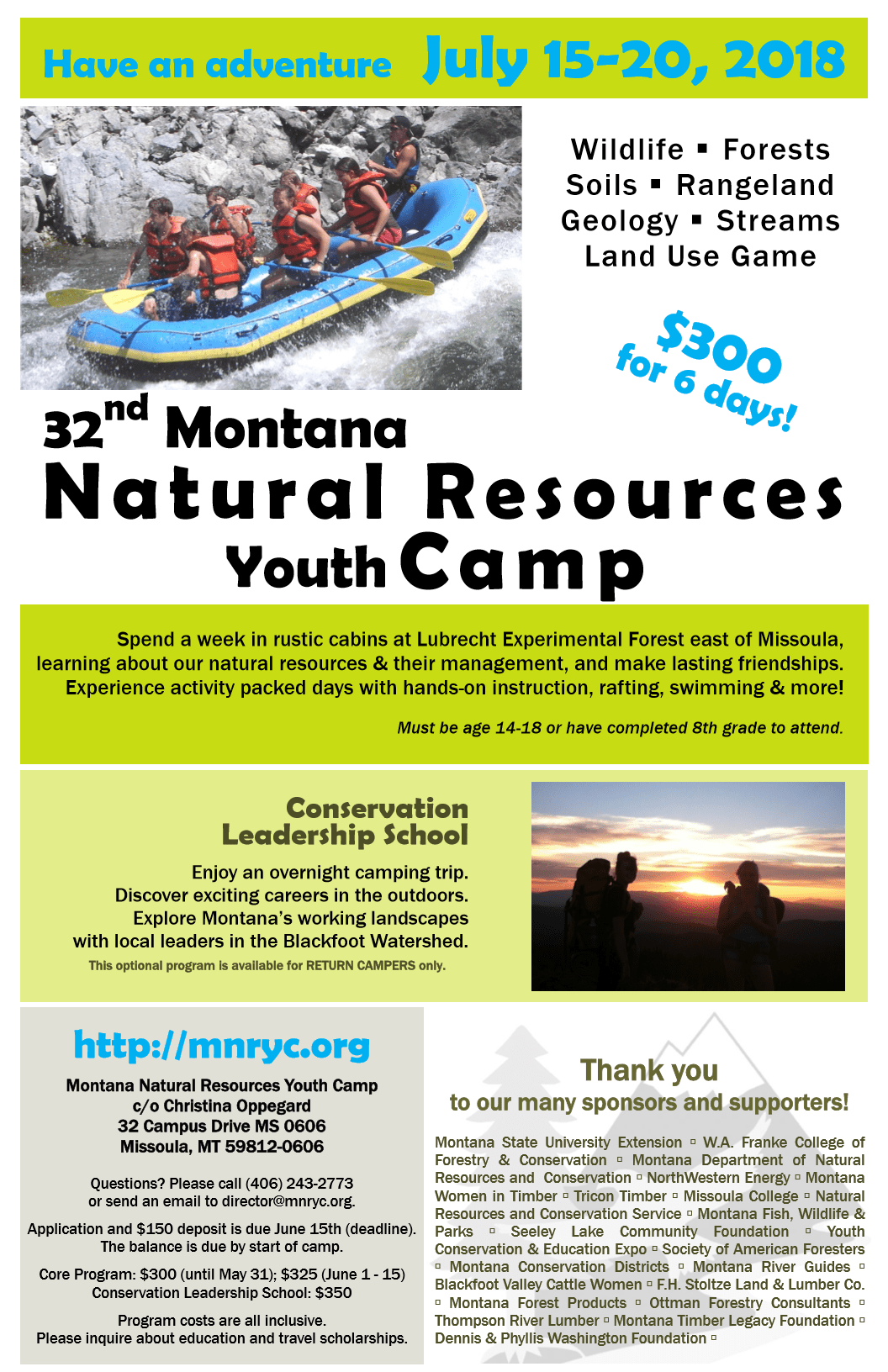 Montana Natural Resources Youth Camp Scholarship – Due June 6