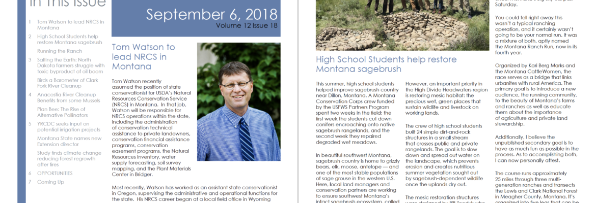 Greetings readers! It’s time for The Montana Conservationist. This week, there’s a lot of new (or, newly appointed) faces in our conservation world: NRCS has appointed a new State Conservationist. Tom Watson, formerly the assistant state conservationist in Oregon, will be leading the agency in Montana. In Southwest Montana, high school students with the Montana […]