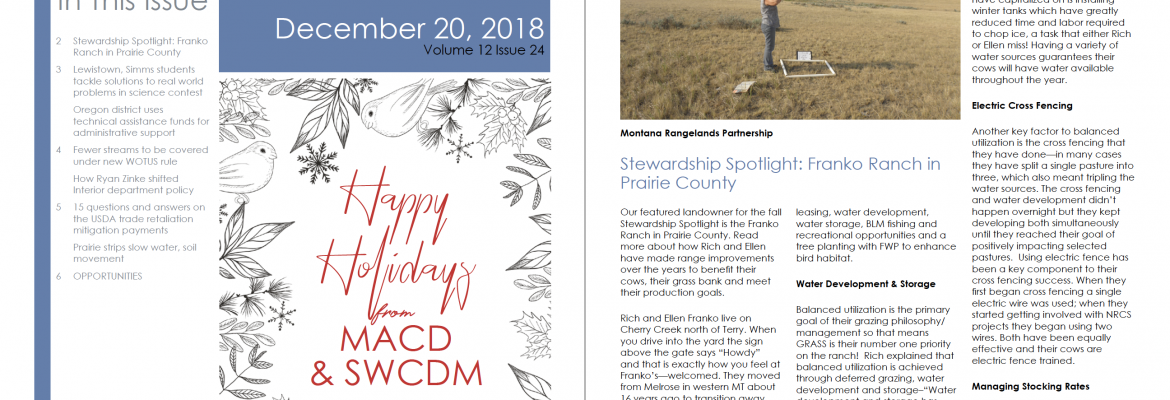 Welcome to the last TMC of 2018! We’ll make this short, since we know you’ve got halls to deck, gay apparel to don, and fa-la-la-la-las to sing. This week: The Montana Rangelands Partnership is shining a spotlight on the Franko Ranch in Prairie County for their stewardship work Students from Simms and Lewistown are solving […]